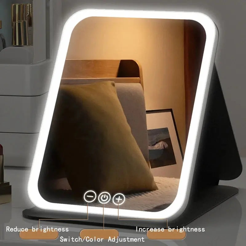 Ce miroir LED rechargeable dispose d'une luminosité réglable pour s'adapter à tous vos besoins. Son format portable et stable permet un positionnement pratique, tandis que son éclairage doux protège les yeux. Élégant, fonctionnel et durable, il est parfait pour le maquillage, les soins du visage et les routines beauté professionnelles ou personnelles.